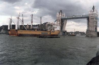 | Keywords: RRS-Discovery-aboard-Happy-Mariner.jpg en RMS Discovery aboard the floating dock Happy Mariner about to pass under Tower Bridge on its way to Dundee own James Buller On 28 March 1986 Happy Mariner ship 1972 1986 in London Tower Bridge in the 1980s Tower Bridge open Ships on the Thames in London Discovery ship 1901 March 1986 in London |