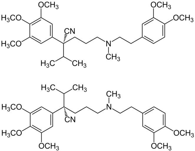 Keywords: (RS)-Gallopamil Structural Formula V.1.svg en RS -Gallopamil_Structural_Formula de RS -Gallopamil_Strukturformel own Jü 2012-04-17 Racemate ± -Gallopamil Nitriles Tertiary amines Cc-zero