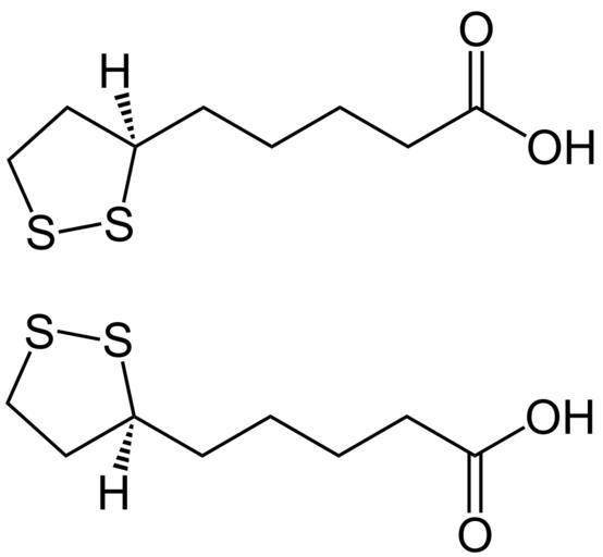 Keywords: (RS)-Lipoic Acid Structural Formulea V.1.svg en RS -Liponic_Acid_Structural_Formulea de RS -Liponsäure_Strukturformel own Jü 12/04/2012 Racemate Lipoic acid Cc-zero