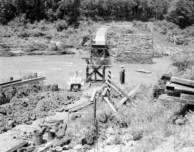 | Keywords: richmond va usa hurricane agnes hurricaneagnes virginia flood flooding natural disaster richmond va usa naturaldisasterrichmondvausa blackandwhite monochrome outdoor black and white The Rt. 654 bridge over the Tye River was washed out in the flash flooding casued by Hurricane Agnes. A missing seciton of the bridge can be seen resting down-river. This crossing is located a half-mile from the Rt. 654 and Rt. 661 intersection, approximately 5 miles southwest of Norwood in Nelson County. No. 72-1433, Virginia Governor's Negative Collection, Library of Virginia. The Rt. 654 bridge over the Tye River was washed out in the flash flooding casued by Hurricane Agnes. A missing seciton of the bridge can be seen resting down-river. This crossing is located a half-mile from the Rt. 654 and Rt. 661 intersection, approximately 5 miles southwest of Norwood in Nelson County. No. 72-1433, Virginia Governor's Negative Collection, Library of Virginia. |