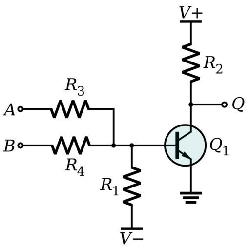 Keywords: RTL NPN NOR Gate.svg NOR gate using Resistor-transistor logic own Inductiveload 2009-01-18 Resistor-transistor logic NOR gates Resistor schemas