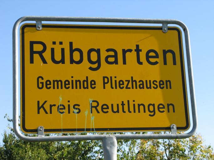 | Keywords: Rübgarten Pliezhausen Ortseingangsschild 20090901.jpg en Rübgarten local area of Pliezhausen Germany - city limit sign de Rübgarten Ortsteil von Pliezhausen Deutschland - Ortseingangsschild own Wamito 2009-08-31 Pliezhausen City limit signs in Landkreis Reutlingen Zeichen 310 in Baden-Württemberg |