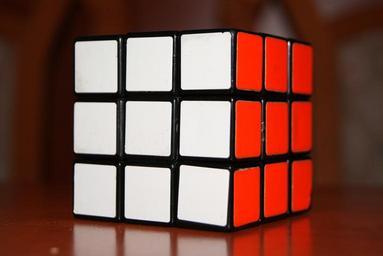 Keywords: rubik cube puzzle strategy 3d red white solved