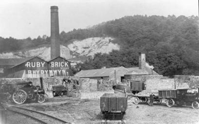 | Keywords: Ruby Brick & Tile Works, Rhydymwyn.jpg  en The Ruby Brick Tile Works Rhydymwyn The photograph was probably taken before WWI It shows the claypit behind the chimney privately owned railway wagons a Foden steam tractor and a lorry owned by Evans Brothers of Mold Probably before 1914 http //lightmoor co uk/view_book php ref ARCH23 Ray Davies Collection Industrial Railways Tramways of Flintshire Part Seven The Mold and Denbigh Junction Railway by J R Thomas M Griffiths p 26 - Archive Issue 23 ISSN 1352-7991 23 other versions PD-old-70-1923 Uploaded with UploadWizard Rhydymwyn Bricks |