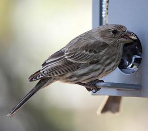 Keywords: ruby finch bird female wildlife nature feeding habitat eating bird-feeder avian beak sunflower seed spring