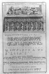 | Keywords: Rudolph4 of Austria Epitaph.png  de Rudolfsgrab Liegefiguren Rudolfs IV des Stifters und seiner Gemahlin Katharina von Böhmen Darstellung der Universitätsprofessoren in den Nischen Figuren seit ca 1800 verschollen Inschriften im Dom betreffend Rudolf d Stifters Rudolph IV of Austria the Founder in the Stephansdom in Vienna The translation of the secret writing into English is This is the sepulcure of Rudolph by the grace of God Duke and Founder and Almighty God and great lord Jesus Christ a shepherd Rudolf was never in fact buried within the almost-solid stone structure but in the Ducal Crypt elsewhere in the cathedral The code used is the Alphabetum Kaldeorum a cipher he probably invented ----- Date 1772 Author Marquard Herrgott Source From the Digital European Cathedral Archives www deca-forum net/e_index htm URL www deca-forum net/deca-cgi/getdoc_e pl DEF d 3A 5Cdata 5Cdeca 5Chida;DATEN d 3A 5Cdata 5Cdeca 5Cdata;THE d 3A 5Cdata 5Cdeca 5Cidx;USER bild;DOK_TPL deca_doc_e tpl;LIST_TPL deca_list_e tpl;FCT g;iftxt rudolf;N_ftxt 0;R_ftxt 3D;ikufo ;N_kufo 1;R_kufo 3D;i024 wien;N_024 2;R_024 3D;i031e ;N_031e 3;R_031e 3D;i029 ;N_029 4;R_029 3D;i038 ;N_038 5;R_038 3D;i039 ;N_039 6;R_039 3D KEY fot 20w0012945 click here information about photo/plan/graphic photo Foto administrator DOMBAUSEKRETARIAT WIEN copyright Dombausekretariat St Stephan photo number 12936/1 colour s/w type of photo Original format 509x768 photographer DBH caption Rudolfsgrab und Epitaph Rudolf IV nach einem Stich oben im Bild Kenotaph unten im Bild Aufschlüsselung einer Geheimschrifft am Epitaph des Rudolf information about representated content place WIEN building Stephansdom title Rudolfsgrab und Epitaph Rudolf IV dating 1365 vor originator Dombauhütte Wien PD-art Cenotaph of Rudolf IV Duke of Austria Epitaphs in Vienna Alphabet charts Artworks missing infobox template |