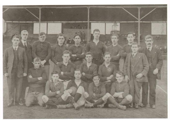 | Keywords: sport rugby team men hartlepool eighteen group portrait 1918 monochrome blackandwhite black and white Hartlepool XV versus Military XV. Friarage Field, Hartlepool, Saturday March 2nd 1918. Mr J. Snowden is on the extreme right of the photograph. HAPMG : 1995.27.4 Images from Hartlepool Cultural Services that are part of The Commons on Flickr are labeled 'no known copyright restrictions' indicating that Hartlepool Cultural Services is unaware of any current copyright restrictions on these images either because the copyright is waived or the term of copyright has expired. Commercial use of images is not permitted. Applications for commercial use or for higher quality reproductions should be made to Hartlepool Cultural Services, Sir William Gray House, Clarence Road, Hartlepool, TS24 8BT. When using the images please credit 'Hartlepool Cultural Services'. Hartlepool XV versus Military XV. Friarage Field, Hartlepool, Saturday March 2nd 1918. Mr J. Snowden is on the extreme right of the photograph. HAPMG : 1995.27.4 Images from Hartlepool Cultural Services that are part of The Commons on Flickr are labeled 'no known copyright restrictions' indicating that Hartlepool Cultural Services is unaware of any current copyright restrictions on these images either because the copyright is waived or the term of copyright has expired. Commercial use of images is not permitted. Applications for commercial use or for higher quality reproductions should be made to Hartlepool Cultural Services, Sir William Gray House, Clarence Road, Hartlepool, TS24 8BT. When using the images please credit 'Hartlepool Cultural Services'. |