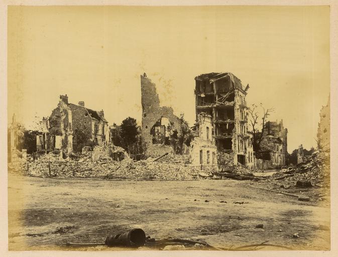 Keywords: Ruins near the Pont d'Auteuil and the Gare d'Auteuil. General View of the Destruction WDL1364.png Artwork ru Б аквейе Б уно 1823 1875 гг fr Braquehais Bruno 1823-1875 en Braquehais Bruno 1823-1875 zh 布鲁诺·布拉奇海 ,1823-1875 年 pt Braquehais Bruno 1823-1875 ar براكهيه برونو، 1823-1875 es Braquehais Bruno 1823-1875 ru Развалины около моста д'Отей и вокзала д'Отей Общий вид аз ушения fr Ruines près du pont et de la gare d Auteuil Vue d'ensemble des ruines en Ruins near the Pont d'Auteuil and the Gare d'Auteuil General View of the Destruction zh 奥特伊桥和奥特伊站附近的废墟 损毁全景 pt Ruínas próximas à Ponte de Auteuil e à Estação de Auteuil Vista geral da destruição ar أطلال بالقرب من جسر أوتاي ومحطة أوتاي منظر عام للحطام ru П ичиной ф анко-п усской войны стал ост нап яженности в отношениях между Ф анцией и П уссией в 1860-х гг Ф анция п и импе ато е аполеоне III была полна ешимости п ове ить астущую силу П уссии и отомстить за то что она ассмат ивала как яд дипломатических унижений П уссия п и канцле е Отто фон Бисма ке считала что война ге манских госуда ств п отив Ф анции под уководством П уссии станет ешающим шагом к созданию единой Ге манской импе ии Конфликт начался 19 июля 1870 г когда Ф анция объявила войну Ф анцузская а мия оказалась ужасно неподготовленной и поте пела сок ушительное по ажение в битве п и Седане отк ыв до огу на Па иж К 19 сентяб я немцкие войска полностью ок ужили го од и начали осаду кото ая п одлилась более четы ех месяцев От езанные от поставок п одовольствия из сельской местности па ижане пытались выжить питаясь собаками кошками и даже животными из па ижского зоопа ка Де евья на Елисейских полях и в па ках были вы ублены и использованы в качестве топлива 5 янва я немецкие войска начали бомба ди овку го ода кото ая п одолжалась по несколько часов каждую ночь в течение 23 суток а ок естности Па ижа было сб ошено около 12 000 сна ядов кото ые убили около 400 человек Па иж сдался 28 янва я в сущности положив конец войне За по ажением ф анцузов последовало на одное восстание и установление в а те 1871г Па ижской коммуны еволюционного п авительства сфо ми ованного в соответствии с ана хистскими и социалистическими п инципами Коммуна была жестоко подавлена в мае 1871 г ф анцузскими войсками п авительства Адольфа Тье а Во в емя неп одолжительного конт оля над Па ижем коммуна ы аз ушали импе ато скую колонну на Вандомской площади Подавление коммуны п ивело к дальнейшим значительным аз ушениям в го оде когда коммуна ы подожгли дво ец Тюиль и Лув и д угие здания К оме того многие здания пост адали или были аз ушены во в емя отчаянной пе ест елки между коммуна ами и конт еволюционными силами Siege de Paris 1870 1871 Осада Па ижа 1870 1871 гг п едставляет собой альбом из 110 фотог афий сделанных Огюстом Б уно Б аквейе 1823 1875 гг ф анцузским фотог афом и п ог ессивным фотожу налистом документи овавшим осаду и последствия бомба ди овок а также аз ушения п оизошедшие во в емя Па ижской коммуны <br>Ф анко-п усская война 1870 1871 гг ; Память ми а; Уще б нанесенный войной fr La guerre franco-allemande fut provoquée par l escalade des tensions entre la France et la Prusse dans les années 1860 La France sous l empereur Napoléon III était déterminée à contenir la croissance de la puissance prussienne et à venger ce qui était considéré comme une série d humiliations diplomatiques La Prusse sous le chancelier Otto von Bismarck considérait qu une guerre dirigée par la Prusse et menée par les États allemands contre la France serait un acte décisif menant à la création d un empire allemand unifié Le conflit débuta le 19 juillet 1870 jour où la France déclara la guerre L armée française s avéra terriblement mal préparée et subit une défaite désastreuse lors de la bataille de Sedan laissant la voie libre vers Paris Le 19 septembre les Allemands encerclèrent complètement la ville et commencèrent un siège qui allait durer plus de quatre mois Coupés du ravitaillement provenant de la campagne les Parisiens survécurent en mangeant 