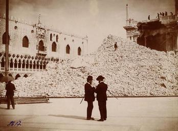 Keywords: Ruins of St Mark's Campanile.jpg Ruins of St Mark's Campanile Le rovine del campanile di San Marco a Venezia dopo il crollo il 14 luglio 1902 Руины Кампанилы собо а Святого а ка http //www muar ru/press_dossier/rogoz5/rog5_7 jpg Shchusev State Museum of Architecture 1902-07-14 author PD-old Collapse of Campanile of St Mark's Basilica Venice People of Venice 1902 |