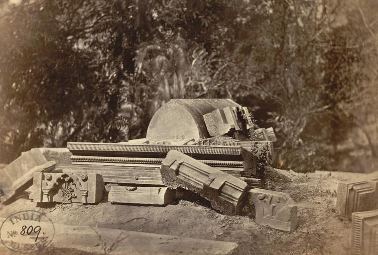 | Keywords: Ruins of the Tomb of Ghias-ud-din Azam Shah, Sonargaon 1872.jpg  en Photograph of ruins from the Tomb of Ghiyas-ud-din Azam Shah Sonargaon near Dhaka in Bangladesh from the Archaeological Survey of India Collections taken by W Brennand in 1872 The province of Dhaka was brought under Islamic rule in the 13th century first by the Delhi Sultanate then by the independent sultans of Bengal after which it was taken by the Mughals in 1608 Sonargaon was the capital of sultans of Bengal from the 13th century until 1608 when Islam Khan the Mughal Governor transferred the capital of the whole province to the nearby city of Dhaka now the capital of Bangladesh Ghiyas-ud-din Azam Shah ruled Bengal from 1368 to 1373 His mausoleum at Sonargaon was carved from a single black of hard black basalt and surrounded by a pillared enclosure The tomb is described in J Wise Notes on Sunargaon Eastern Bengal Journal of the Asiatic Society of Bengal vol XLIII part I Calcutta 1874 pl VIII 'This tomb has fallen to pieces The iron clamps that bound the slabs together have rusted and the roots of trees have undermined the massive stones This mausoleum formerly consisted of a ponderous stone which occupied the centre surrounded by pillars about five feet in height The stones are all beautifully carved and the corners of the slabs and the arabesque tracery are as perfect as the day they left the workman's hands The stones are formed of hard almost black basalt This tomb might be easily repaired and the cost of doing so would be inconsiderable There is no old building in Eastern Bengal which gives a better idea of Muhammadan taste than this ruined sepulchre; and there is none when properly repaired which would so long defy the ravages of time ' 1872 http //www bl uk/onlinegallery/onlineex/apac/photocoll/r/019pho001000s27u02730000 html Brennand W Custom license marker 2013 01 06 PD-Bangladesh Uploaded with UploadWizard Brennand W Old vintage photographs of Bangladesh |