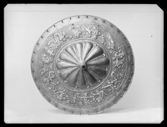 | Keywords: Rundsköld - Livrustkammaren - 77058.tif LSH artwork sv Rund sköld med dekor i tre fält Ytterst en slät kantbård i ytterkanten 36 fyrsidiga taggar med spår av förgyllning Därinnanför en ring kantad med lagerkransbårder spår av förgyllning på ringen i hög relief ett nereid-och tritontåg mot punsad bakgrund spår av förgyllning I mitten en krysantemumblomma med 12 större blad med rester av förgyllning och däremellan smalare blanka blad I mitten en uppdriven spets däri inskruvat en 142 mm hög balusterformig fyrsidig spets med fasade kanter rester av förgyllning Ett hål på vardera sidan om spetsen <br/><br/>På baksidan ett kraftigt stålhandtag l 150 mm på motsatta sidan fastnitat en läderrem l 330 mm med ett hål samt en sölja av stål fastnitad i ett dubbelt stålband b 30 mm som i sin tur är nitat i skölden <br/><br/>Krigsbyte från Warszawa 1655-08-30 I LRK äldre inventarier upptagen som en del av Magnus Ladulås rustning utställd i kungalängden i Riddarholmskyrkan 1823-1855 original caption rundsköld - LRK 2935 Erövringen av Warszawa ca 1550 steel - leather g 4730 size mm 565 LRK Wawel 1000-2000 2000 Eagle and Three Crowns 2002 Eagle and Three Crowns 2002 Sweden and Europe 1632-1792 2003-2004 Örnen och de tre kronorna 2003 Parures Triomphales 2003 Krigsbyte 2007-2008 Imagines potestatis - Regalia and Symbols of Authority of Polish Kings and Grand Masters of the Teutonic Knights 2007 Europa Jagellonica 1386-1572 - Kunst und Kultur Mitteleuropas zur Zeit der Jagiellonen 2012-2013 Kutná Hora Warszawa Potsdam place of origin original filename LN_A00139_000139 39545 inventory number LRK 2935 77058 CC0 Rundsköld - Livrustkammaren - 77058-negative tif <gallery caption Different images of same object > File Detalj dekor Rundsköld Polen ca 1550 efter italiensk förebild - Livrustkammaren - 50181 tif File Rundsköld - Livrustkammaren - 25699 tif File Detalj dekor Rundsköld Polen ca 1550 efter italiensk förebild - Livrustkammaren - 67304 tif File Detalj dekor Rundsköld Polen ca 1550 efter italiensk förebild - Livrustkammaren - 58742 tif </gallery> Media contributed by LSH unmatched event Media contributed by LSH unmatched objKeyword Media contributed by LSH without any categories Media contributed by LSH unmatched place Shield images from Livrustkammaren Media contributed by LSH 2014-06 |