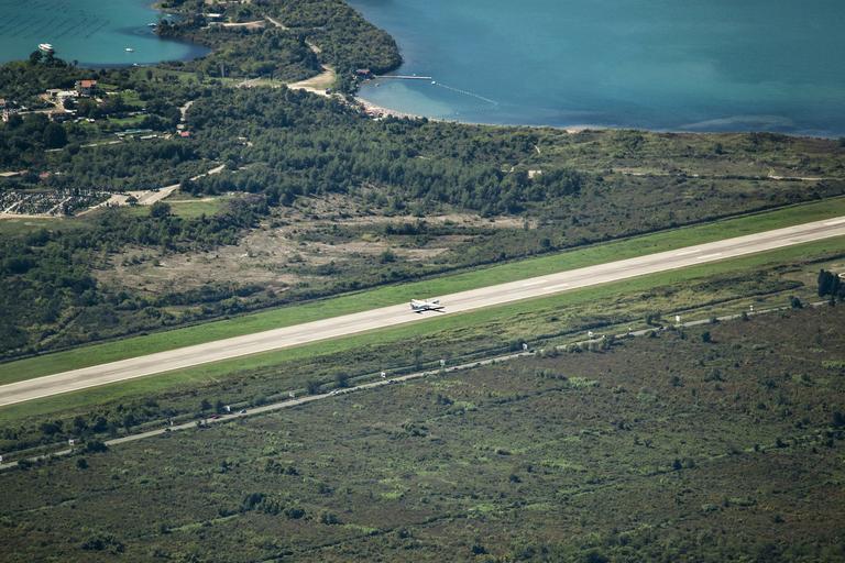 Keywords: runway plane air airplane airport aircraft aerial view montenegro