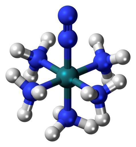 | Keywords: Rupentammine N2 3D ball.png Ball-and-stick model of the rupentammine N2 complex cation with a positive charge of 2 Colour code F0F0F0 Hydrogen H white<br> 3C50FA Nitrogen N blue<br> 018C90 Ruthenium Ru teal<br> 2011-06-15 own DS Visualizer Jynto talk Space-filling version Stick version cc-zero Ruthenium complexes Ammine complexes Dinitrogen complexes Complex cations Images by Jynto | ||||