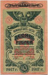 Keywords: Russia-Odessa-1917-Banknote-10-Obverse.png Banknote of Odessa 1917 10 rubles obverse Разменный билет Одессы 1917 год 10 ублей лицевая сто она Banknote is courtesy of collector who wants to remain anonymous Thank you I scanned this image Банкнота п едоставлена коллекционе ом пожелавшим остаться анонимным Спасибо Отскани овано мной 1917 PD-RU-exempt banknotes PD-UA-exempt banknotes PD-old-70 Banknotes of Odessa 1917 1919 Banknotes with a face value of 10 |