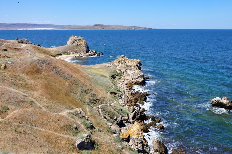 Keywords: russia sea ocean water sky clouds landscape rocks rocky beach nature outside outcrops crags beautiful summer spring