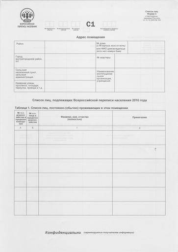Keywords: Russian Census 2010 - Form S (1).jpg ru Фо ма C «Список лиц» список лиц п оживающих в помещении Лицевая сто она Goskomstat Goskomstat 2009-12-31 PD-RU-exempt Russian Census 2010