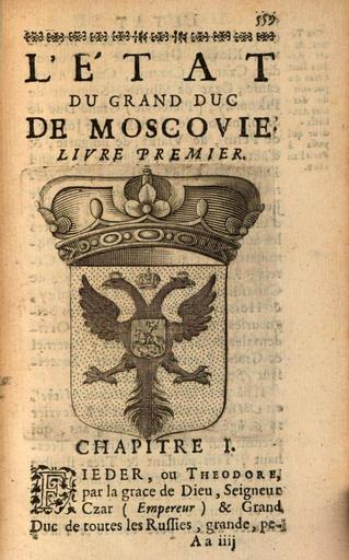 | Keywords: Russian COA 1680.png ru Ге б Фёдо а Алексеевича ца я и великого князя Всея России из книги Pierre Scévole de Sainte Marthe L'état de l'Empire d'Angleterre de Dannemarc Suede Pologne et Moscovie Paris 1680 http //books google ru/books id McsMAAAAYAAJ hl ru source gbs_navlinks_s author 1680 PD-old-100 Coats of arms of the Tsardom of Russia |