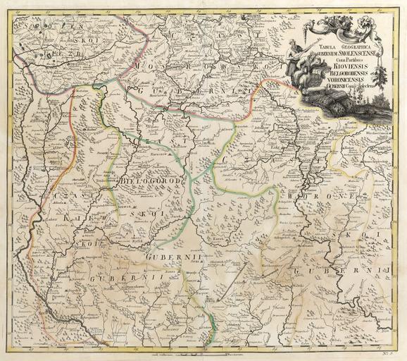 | Keywords: Russian Empire 1745 (Map V in Latin).jpg Russian Empire 1745 Map IV in Latin jpg Russian Empire 1745 Map VI in Latin jpg ru Пе вый официальный атлас Российской импе ии 1745 Ка та Смоленской губе нии с частями Киевской Белго одской и Во онежской губе ний О игинальная ка та г ави ована на меди и аск ашена в учную аква елью en First official geographic atlas of the Russian Empire 1745 Map of Smolensk governorate and parts of Kiev Belgorod and Voronezh governorates Hand-coloured copper engraving Атлас Российский 1745 en Geographic atlas of the Russian Empire 1745 РА Russian Academy of Science 1745 <gallery> File Russian Empire 1745 Map V HQ jpg Ка та на усском языке Same map in Russian File Russian Empire 1745 Map V jpg Че но-белый ва иант на усском низкое качество Black white in Russian low quality </gallery> PD-old-100 Atlas of Russian Empire 1745 year in Latin |