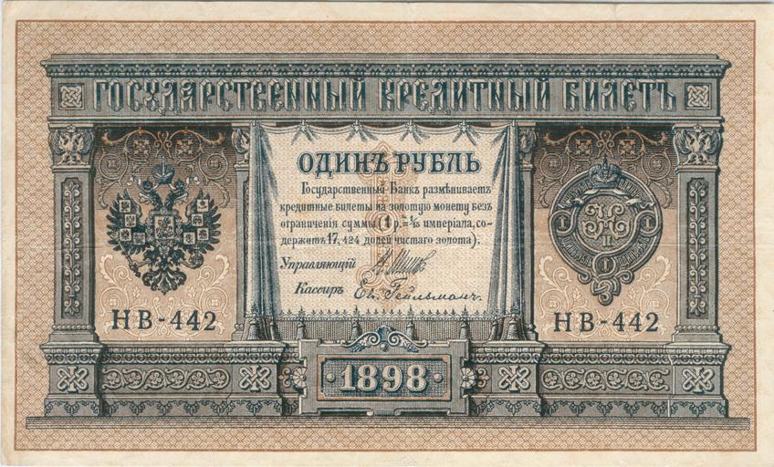 Keywords: Russian Empire 1898 Bill 1F.jpg Russian Empire 1 ruble banknote 1898 version Front side Российская банкнота достоинством 1 убль об азца 1898 года Лицевая сто она с подписями касси а Гейльмана и уп авляющего Естественные цвета Scanned banknote from own personal collection 1898 / 2007 original upload date from RUWiki Bank of Russian Empire / Scanned and processed by Vizu PD-RU-exempt banknotes PD-RusEmpire PD-old Russian Empire-1898-Bill-1-Reverse jpg 1898 in Russia 1 ruble Banknotes of the Russian Empire Nicholas II rule Banknotes with a face value of 1 |