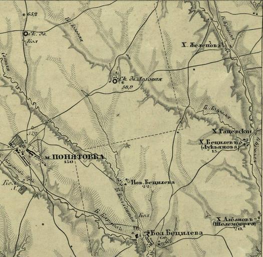 | Keywords: Russian Empire Map (3 versty) 30-08 Becilev.jpg en Fragment of sheet XXX-8 of 3-verst war-topographic map of western part of Russian Empire ru Ф агмент листа XXX-8 т ехве стная военной топог афической ка ты Западной части Российской импе ии http //kartolog ru/2010/01/trexverstnaya-voennaya-topograficheskaya-karta-rossijskoj-imperii/ Ка та г ави ована п и Военно-топог афическом Депо 1863 Fragment of File Russian Empire Map 3 versty 30-08 jpg PD-old PD-RusEmpire Old maps of Kherson Governorate Rozdilna Raion |