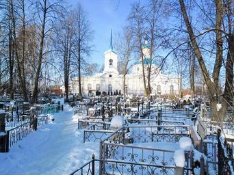 Keywords: russian landscape church buildings winter snow ice nature outside trees cemetery