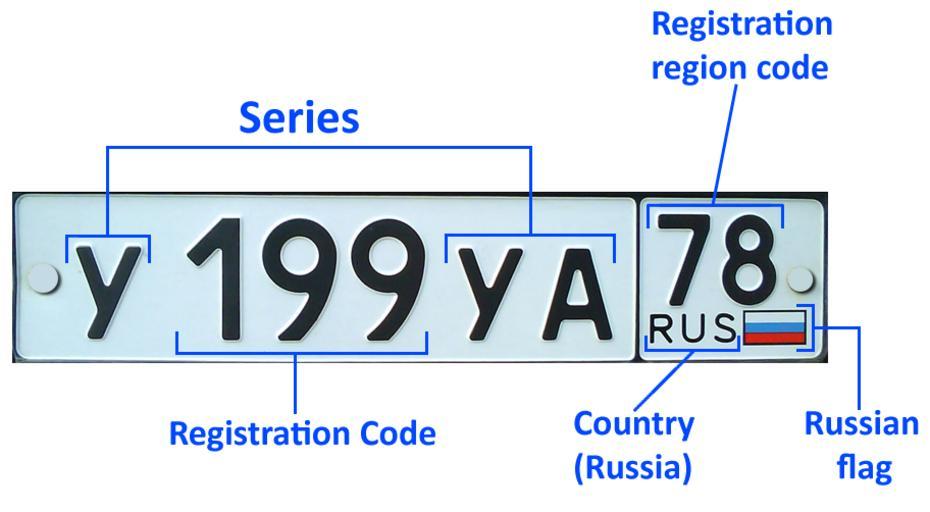 | Keywords: Russian license plate (EN).png English version ru Регист ационный номе ной знак Российской Феде ации С описанием Английская ве сия de Kfz-Kennzeichen Russische Föderation Beschreibung Englische Fassung own MacMax 2008-06-06 MacMax <gallery> Image Russian license plate DE png <center>German version</center> Image Russian license plate Other Languages png <center>Version for other languages</center> Image Russian license plate RUS png <center>Russian version</center> Image Russian license plate HU png <center>Hungarian version</center> </gallery> License plates of Russia 199 number 78 number |