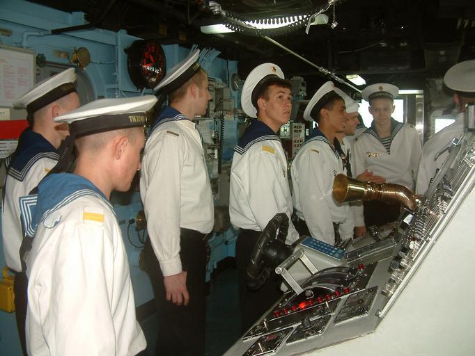 | Keywords: Russian sailors on bridge of USS Fort McHenry (LSD-43) 2003-07-05.jpg Russian navy sailors take a look at the helm on the bridge of the amphibious dock landing ship USS Fort McHenry LSD 43 during a goodwill tour http //www navy mil/view_image asp id 8512 2003-07-05 Journalist 2nd Class Robert Sealover USN PD-USGov-Military-Navy Files by User BrokenSphere Aboard USS Fort McHenry LSD-43 Navy people of Russia Sailor suits | ||||