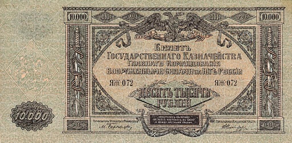 Keywords: RussiaPS425-10000Rubles-1919 f.jpg 10000 ублей 1919 Аве с jpg Казначейство ВСЮР 1919 http //aes iupui edu/rwise/countries/ 1919 currency Original upload log ru wikipedia ftcg page ru wikipedia RussiaPS425-10000Rubles-1919_f jpg wikitable - 05 18 23 September 2007 720 × 353 153 963 bytes Vizu w ru <nowiki> Описание Авто В емя создания Источник </nowiki> Banknotes of the Armed Forces of South Russia Banknotes of Russia 1919 Banknotes with a face value of 10000 |