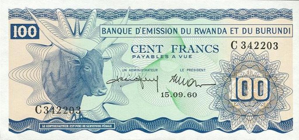 Keywords: RwandaBurundiP5-100Francs-600915-donatedth f.jpg en 100 francs es 100 francos Ron Wise's World Paper Money http //aes iupui edu/rwise Banque d'emission de Rwanda et Burundi 1960 PD-Old GFDL cc-by-sa-all Banknotes of Burundi Banknotes of Rwanda Animals on banknotes Banknotes with a face value of 100 1960 banknotes |