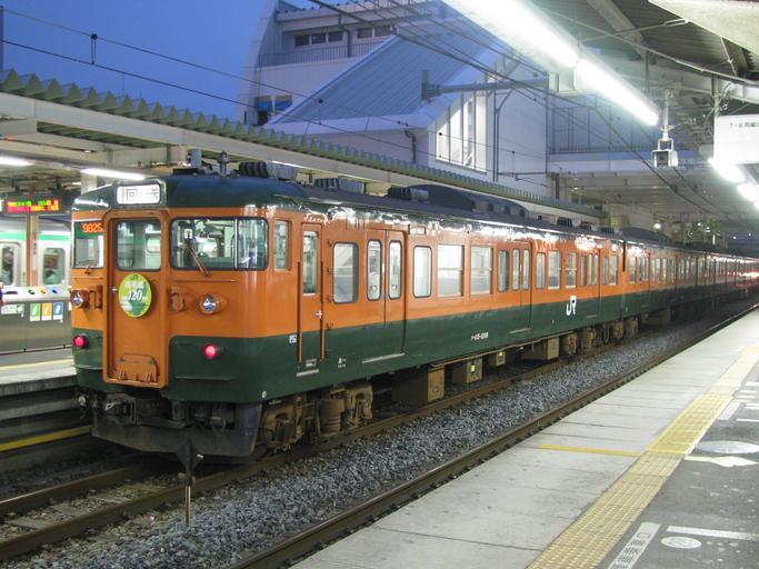 | Keywords: Ryomo Line 120thAnniv Train Kuha115-1208 Ageo 20091101.jpg Ryōmō Line at Ageo Station 臨時快 列車 両毛線120周年号 (桐生発 上尾ゆき 2009年11 1日のみ運転) 上尾駅終 後 大宮方先頭車 クハ115-1208 + サハ115-1019 + モハ114-1159 + クモハ115-1065 Photographed by Vantey 2009-11-01 Uploader; Vantey <gallery> File Toritetsu at Ageo Station 20091101 1 jpg File Toritetsu at Ageo Station 20091101 1 jpg File Toritetsu at Ageo Station 20091101 2 jpg File Toritetsu at Ageo Station 20091101 2 jpg </gallery> Taken with Canon PowerShot SX100 IS Files uploaded by Vantey JNR 115 JR East Ryōmō Line Rail transport events in Japan 2009 in rail transport in Japan 2009 events in Japan November 2009 in Japan 2009-11-01 Ageo Station Night in Saitama prefecture Number 120 on vehicles |