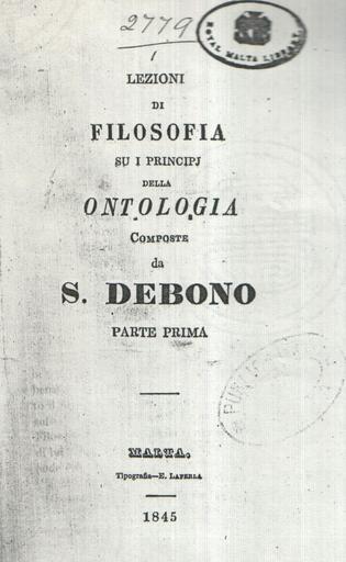 Keywords: S. Debono - Lezioni di Filosofia.jpg en Lezioni di Filosofia 1845 by S Debono 2011-10-30 own Katafore PD-old Uploaded with UploadWizard Philosophy books book covers single pages etc