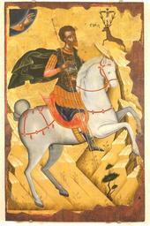 | Keywords: S.Eustace (Cretan school, 16th c.).jpg Ο Άγιος Ευστάθιος αρχές 16ου αιώνα 80x126εκ άγνωστος Κρητικός ζωγράφος Ο άγιος ΕυΣΤΑΘΗΟΣ Ο άγιος Ευστάθιος εικονίζεται έφι ος με στρατιωτική ενδυμασία να κοιτάζει ψηλά στον βράχο το ελάφι ου έχει ανάμεσα στα κέρατά του τον Εσταυρωμένο Στην αριστερή ε άνω γωνία της εικόνας ροβάλλει το χέρι του Θεού ου ευλογεί Σύμφωνα με το βίο του ο άγιος ήταν ρωμαίος στρατηλάτης και ονομαζόταν Πλακίδας http //eib xanthi ilsp gr/gr/icons asp cursort iconTitle selectFieldValue vpage 3 early 16th century unidentified Cretan painter Icons of Saint Eustace Files uploaded by Shakko from various sources Cretan School Uniate and Catholic icons 16th-century icons of Greece Hand of God PD-old |
