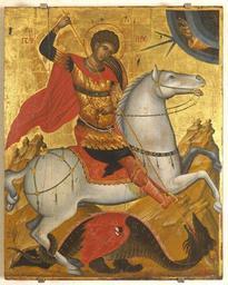 | Keywords: S.George (Candia, late 15th c.).jpg  Ο Άγιος Γεώργιος έφι  ος δρακοντοκτόνος τέλη 15ου αιώνα 65 5x82 5εκ άγνωστος ζωγράφος του Χάνδακα Στην εικόνα αυτή  αριστάνεται ο άγιος Γεώργιος με στρατιωτική εξάρτυση και έφι  ος τη στιγμή  ου σκοτώνει τον φτερωτό δράκοντα με το δόρυ του Α ό το τεταρτοκύκλιο του ουρανού  ροβάλλει το χέρι του Θεού  ου τον ευλογεί Πρόκειται για το  ιο δημοφιλές θαύμα του αγίου το ο οίο στο βίο του συσχετίζεται με την α ελευθέρωση της  όλης της Λασίας α ό τον δράκοντα και τη διάσωση της μικρής  ριγκί ισσας http //eib xanthi ilsp gr/gr/icons asp cursort iconTitle selectFieldValue vpage 3 late 15th century unknown painter of Candia Icons of Saint George and the Dragon 1490 Files uploaded by Shakko from various sources Icons of Candia 15th-century icons of Byzantine Empire Paintings of coats of arms PD-old |