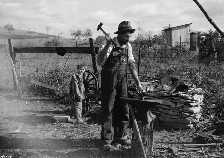 | Keywords: S. J. Barley, Rural Route 2, LaFollette, Tennessee - NARA - 532721.jpg Scope and content S J Barley Rural Route 2 La Follette Tennessee Part of his best land will be inundated by Norris Dam reservoir Barley is an ex-preacher a blacksmith and a carpenter as well as a farmer He has had 17 children only 11 now living and is an applicant for a job He invested his life savings in a coal mine and lost it all The neighbors say `He was born in a blacksmith shop with a hammer in his hand He made the `bull-tongue plow in the picture Of the boy helping him at the outdoor forge he said `He is my sixteenth baby and I have one smaller General notes 532721 Local identifier 142-H-103 Tennessee Valley Authority 1933 - NARA-Author Hine Lewis Wickes 1874-1940 Photographer 1122914 <br /> Tennessee United States North and Central America state 4192111 35 5 -85 <br /> Still Picture Records Section Special Media Archives Services Division NWCS-S National Archives at College Park 8601 Adelphi Road College Park MD 20740-6001 1933-11-08 Record group Record Group 142 Records of the Tennessee Valley Authority 1918 - 2000 Record group ARC 471 Lewis Hine Photographs for the Tennessee Valley Authority TVA compiled 1933 - 1933 Series ARC 532624 File unit File unit ARC Variant control numbers NAIL Control Number NWDNS-142-H-103 no Other versions <gallery> File S _J _Barley _Rural_Route_ 2 _LaFollette _Tennessee_-_NARA_-_532721 tif tif File S _J _Barley _Rural_Route_2 _LaFollette _Tennessee_-_NARA_-_532721 jpg jpg File S _J _Barley _Rural_Route_2 _LaFollette _Tennessee_-_NARA_-_532721 tif tif Cropped color corrections </gallery> NARA-cooperation PD-USGov NARA TIF images with categorized JPGs Tennessee Blacksmiths from the United States Men at work in Tennessee People of Tennessee People in 1933 Anvils Blacksmith's tools Forges in the United States Fences in Tennessee Ploughs in the United States LaFollette Tennessee 1933 in Tennessee Black and white photographs of Tennessee Black and white photographs of men Files uploaded by Yann Forget |