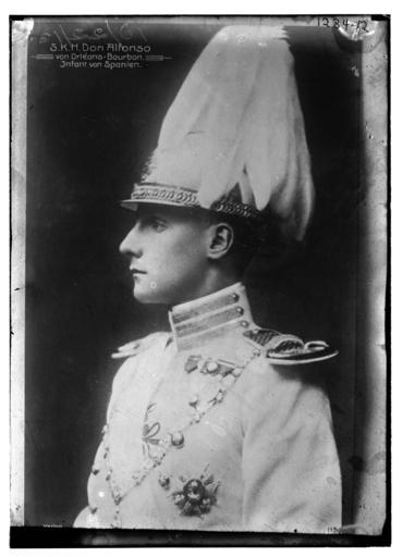 | Keywords: S.K.H. Don Alfonso von Orleans-Bourbon, Infant von Spanien (Spanish Prince).jpg S K H Don Alfonso von Orleans-Bourbon Infant von Spanien Spanish Prince - cropped jpg S K H Don Alfonso von Orleans-Bourbon Infant von Spanien Spanish Prince About This Item Obtaining Copies Access to Original Title S K H Don Alfonso von Orleans-Bourbon Infant von Spanien Spanish Prince Creator s Bain News Service publisher Date Created/Published 10/22/13 date created or published later by Bain Medium 1 negative glass ; 5 x 7 in or smaller Reproduction Number LC-DIG-ggbain-06683 digital file from original neg Rights Advisory No known restrictions on publication Call Number LC-B2- 1284-12a P P LOT 11148 Corresponding print Repository Library of Congress Prints and Photographs Division Washington D C 20540 USA http //hdl loc gov/loc pnp/pp print Notes Forms part of George Grantham Bain Collection Library of Congress Title from unverified data provided by the Bain News Service on the negatives or caption cards General information about the Bain Collection is available at http //hdl loc gov/loc pnp/pp ggbain Format Glass negatives Collections Bain Collection Bookmark This Record http //www loc gov/pictures/item/ggb2004006683/ View the MARC Record for this item Rights assessment is your responsibility Bain News Service publisher http //www loc gov/pictures/item/ggb2004006683/ s 1910 Infante Alfonso Duke of Galliera Verlag A Gimm Gotha PD-old |