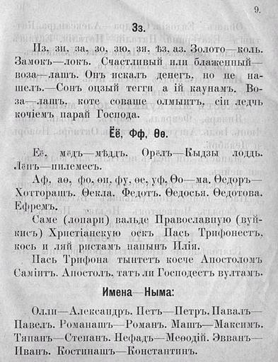 | Keywords: Saam1895.jpg en list from the first Skolt Sami primer written by Konstantin Ščekoldin 1895 ru Ст аница из колтта-саамского буква я составленного Константином Щеколдиным 1895 год Азбука для лопа ей живущихъ въ Кольскомъ уѣздъ А хангельской губе ній изданіе П авославнаго миссіоне скаго общества А хангельскъ 1895 1895 Константин Щеколдин PD-old Books in Sami languages Skolt Sami language 1895 books Cyrillic alphabets for non-Slavic languages | ||||