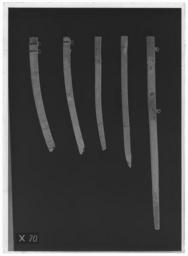 Keywords: Sabelbalja, fragment - Livrustkammaren - 35054-negative.tif LSH artwork sv Fragment av sabelbalja övre halvan Stomme av trä klädd med läder skodd utmed kanterna av stålskenor <br/>Munbleck 145 mm högt längre vid sidorna Vid bakkanten rund hållare med koppelring original caption size mm 350 56 LRK place of origin original filename LN_B05224_008104 47483 inventory number LRK 10918 35054 CC0 Sabelbalja fragment - Livrustkammaren - 35054 tif |