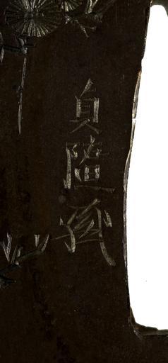 Keywords: Sadayuki - Tsuba with Chinese Generals Kanyu, Gentoku and Chohi - Walters 51340 - Mark A.jpg Under a pine tree at the right of this tsuba are three Chinese generals Kanyu Ch Guan Yu Kuan Yu Gentoku Ch Liu Bei Liu Pei and Chohi Ch Zhang Fei Chang Fei They fought together in the 2nd century at the beginning of the Three Kingdoms period Gentoku eventually became emperor of Shu Shu On the reverse of the tsuba is a pine tree century 18 Edo shibuichi with gold copper and gold alloys cm 6 9 accession number 51 340 17441 Henry Walters Baltimore date and mode of acquisition unknown Walters Art Museum Henry Walters Acquired by Henry Walters Signature Sadayuki kao place of origin Japan Walters Art Museum license Tsuba in the Walters Art Museum Sadayuki Media contributed by the Walters Art Museum needs category review |