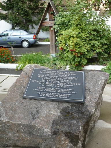 Keywords: Sahaydachny NaUKMA.JPG uk Кам'яна б ила та х ест на честь гетьмана Сагайдачного в аУК А own Silin2005 2009-08-31 National University of Kyiv-Mohyla Academy