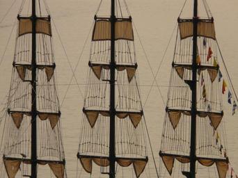 Keywords: sail ship sailing vessel hoist hoisted rigging good standing running well masts cordage shrouds stage spars blocks pods