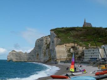 Keywords: etretat hill pebble coast arch stone france natural travel view rock rocky panoramic horizon formation chalk alabaster tide normandy beach french edge bay tourism cliff sea scene water nature coastline geology