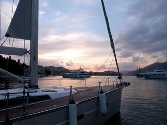Keywords: sailboat shipping port boat sunset travel nautical sail vessel cruise navigation marine transportation wave yachting regatta mast anchor mediterranean rope relax maritime marina tourism vacation deck lifestyle wooden transport dock relaxation recreation