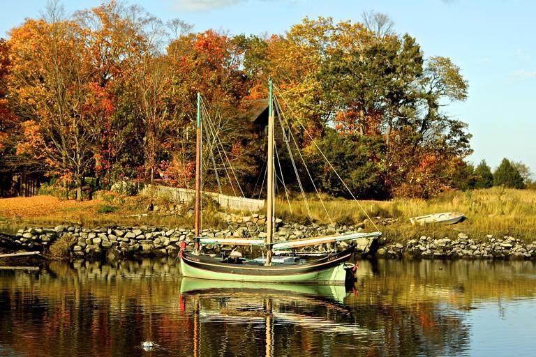 Keywords: sailboats boat vessel water river fall autumn foliage colors
