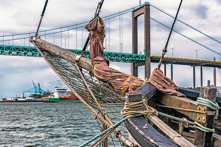 Keywords: sailing boat bug port baltic sea gothenburg sweden bridge älvsborgsbron sail dew seafaring anchor canvas great network