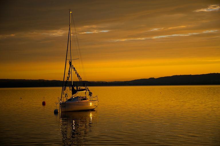 Keywords: sailing boat lake ammersee boot water sail mood sunrise
