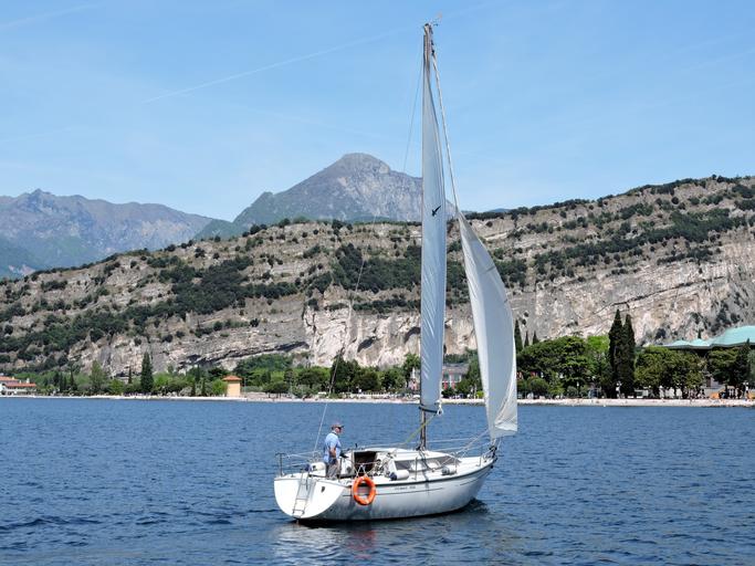 Keywords: sailing boat lake mountain water garda italy landscape sky