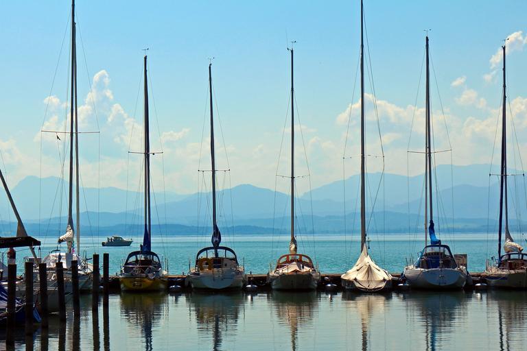 Keywords: sailing boat sailing vessel boot anchor anchorage lake blue waters nature clouds coast holiday recovery water rest idyll atmospheric