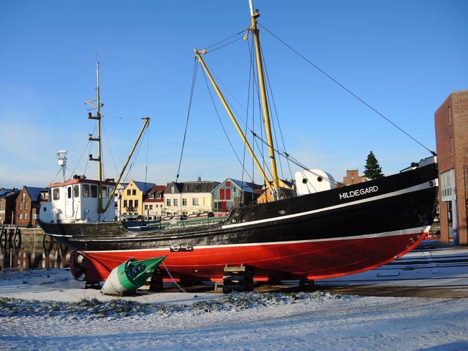 Keywords: sailing boat ship husum port boot kahn dry dock