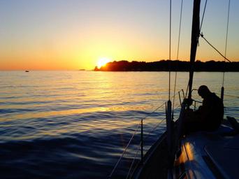 MAKE A MEME View Large Image sailing boat sunset sea waves horizon