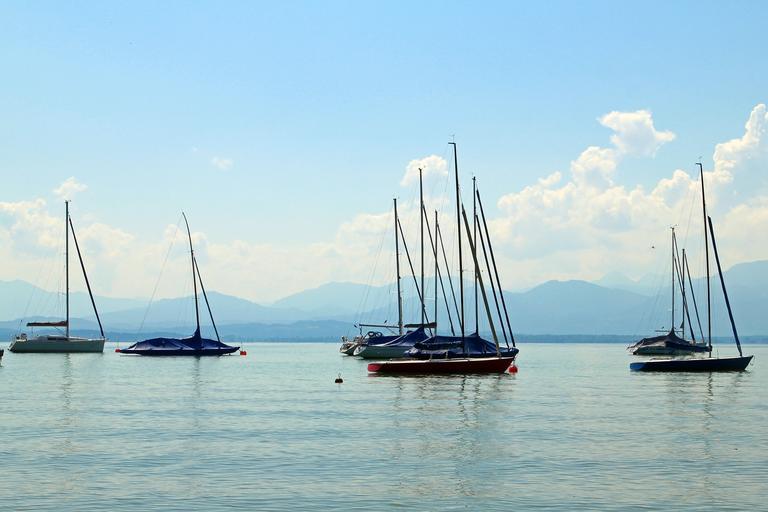 Keywords: sailing vessel boot anchor anchorage lake blue waters nature clouds coast holiday recovery water rest idyll atmospheric